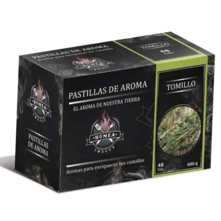 Het aroma van het tijmblad is intens, geurig en wordt veel gebruikt in Spaanse gastronomie. Daarom is het geschikt voor het roken van alle soorten vlees, vooral wild, worstjes, vis, aardappelen en groenten. De Pastilla zorgt er door zijn compactheid voor dat het roken veel langer duurt en daardoor is de smaak intenser.