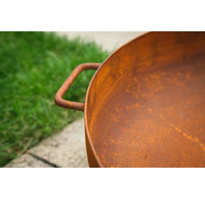 Dit product is gemaakt van staal en heeft de neiging te roesten onder invloed van vocht en zuurstof. Het doel van de zorg is vooral het vermijden van roest. Om roest effectief te voorkomen mag de vuurschaal niet meer in de regen staan dus altijd wegzetten na gebruik en behandelen met olie. Herhaal de behandeling met olie regelmatig voor langdurige bescherming. Geschikt voor dit doel zijn bijvoorbeeld koolzaadolie, lijnzaadolie of reuzel.