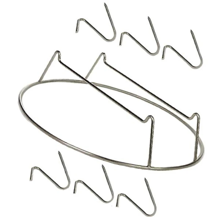 De Gateway Drum Smoker Rib Hanger Kit is uniek ontworpen met zijn beroemde schuine staven om vlees verticaal in je roker te hangen, terwijl je de ruimte maximaliseert en het gewicht verdeelt om gemakkelijk meerdere rekken met ribben of zelfs ander vlees op te hangen. Het ontwerp met handelsmerkhoek is de eerste in zijn soort op de markt en is exclusief verkrijgbaar bij Gateway Drum Smokers. Deze Rib Hanger Kit werkt goed met niet alleen Gateway Drum Smokers, maar ook met andere koepelachtige stijlrokers! De Rib Hanger Kit bevat de haakse hanger (2 bars) en set van 6 haken om uw vlees gemakkelijk op te hangen, zodat de hitte uw vlees volledig kan omringen. Extra haken kunnen worden gekocht om tegelijkertijd te gebruiken. Bekijk onze Hooks (Set van 6) voor meer informatie!