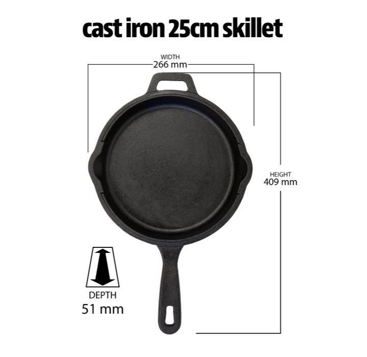 - Diameter Gietijzeren Skillet: 30,5 cm